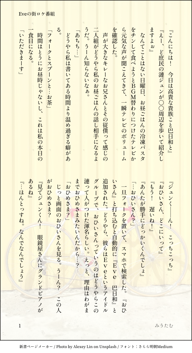 miutam614 @miutam614 あんスタ ジュンひよで二次創作しています。ここでは作業進捗用またはおさまりきらなかったオタク妄想用です。節操のない残像のようなもの。 ☆quiet follow Yell with Emoji POIPOI 39