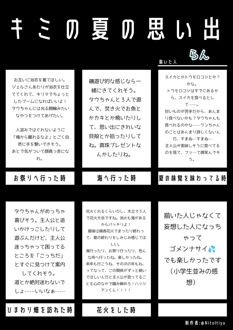 シルバー文鳥らん☆quiet followMEMOテンプレートをお借りして妄想したやつ。お相手はハッシアンくんです。本当はイラスト用だけど各シュチエーションを考えるのが楽しくて文章にしちゃった。てへぺろ。枠に入れようと思ったら字が小さくなった〜読みにくくてごめんなさい。 #倉庫のテンプレート Tap to full screen (size:1448x2048).Repost is prohibited Let's send reactions! freqpopularsnackothersPayment processing Replies from the creator Follow creator you care about!☆quiet follow シルバー文鳥らんDOODLE笑顔の🦉を描きたかっただけ シルバー文鳥らんDOODLEゆうぎおうのトレスパロまとめ 7 シルバー文鳥らんDOODLE🧸×🍄さま。勝手に描いたファンアートはちきれちゃうかもしれない🫣というフォロワーさまのコメントから思いついたネタです🧸🍄解釈違いでしたらごめんなさい。🍄さん「最近胸が苦しい(物理的な意味で)」🧸さん「わしが育てた」 シルバー文鳥らんDOODLE自機🦉の🔞🫣なヤツ パス🏹💚✨https://x.com/theposearchives/status/1954694133458804969?t=ePckBcEtVHd8GBar6VDDSQ&s=19↑こちらのポーズを参考にしております。🥧は良いですね。🥧の良さを教えてくださったフォロワーさまに改めて感謝です…🥧、練習しますこれはおそらく木立のテント シルバー文鳥らんDOODLE⚠️🏹×自機🦉注意https://x.com/nippydesu/status/1956698167510229375こちらの素材をお借りしました!なにがどうなってこうなったのかは謎🤣🦉はラキスケ属性なのでね、こういうToLOVEる…トラブルはあります🤣🤣 シルバー文鳥らんDOODLEhttps://x.com/GOCHUJAN_G/status/1955172911775617510🏹×自機🦉素材お借りしました🙇そこは胸筋だよ自機…🤣 2 related works きさいちDONE #倉庫のテンプレートこれは絶対杉辺で描きたいと思ったのでテンプレお借りしました! ayuno_man2DOODLEいつもの感じ(高リピ神)と、2枚目は出来心です(ちょっぴり流血注意!)PW:公開日(4桁)#倉庫のテンプレート 2 usaginoaramasaDONE今日の馬族[20250622]そろそろ寝言絵を描きたくなったのでテンプレートをお借りしてみました…!本来表情に絶対に出さないようにする人だと思うんですよ…悟られまいと。特定の人にだけ意図的にそういう表情見せて気が付いてくれないかなぁってあざとかわいいことしてくるんですよね、きっと…あざ岱さんなんだ…! jojojohn082DOODLEテンプレートお借りしました!素直になれないろしょ So Cute🫰 ©️銀 寿羅DOODLE【🍎🎸でキス22箇所♡】Xの倉庫さま(@NitoItiya)より、テンプレお借りして🍎🎸でひたすらキスしてもらいましたー!みんなはどのキスが好き??( ˙꒳˙ ) 4 k0uji38_yoiDONEテンプレのやつです usaginoaramasaDONE今日の元直[20250122]テンプレートをお借りしました!本来なら真っ白くなって呆けてるお顔なんだろうなとおもいつつも彼のことなので「えっ…?!」ってお相手の下着姿をあれやこれ想像していたらジワジワきて気がついたら1日終わってても可愛いだろうなぁと。お好みのお相手で想像してもらあると嬉しいです!#フキダシ素材のテンプレート#創作テンプレート#倉庫のテンプレート シルバー文鳥らんMEMOテンプレートをお借りして妄想したやつ。お相手はハッシアンくんです。本当はイラスト用だけど各シュチエーションを考えるのが楽しくて文章にしちゃった。てへぺろ。枠に入れようと思ったら字が小さくなった〜読みにくくてごめんなさい。 usaginoaramasaDONE今日の馬族[20250207]テンプレートをお借りしました!8の照れ台詞の「おっと…」の言い方が好きすぎてチョイス。馬岱さん的にはニヨニヨなんですよね、ゴメンねと言いつつガン見してますね、多分。あまりに爽やか過ぎてあとからジワジワと恥ずかしさがくるかもしれない。お好みのお相手で想像してもらえると嬉しいです!#フキダシ素材のテンプレート#創作テンプレート#倉庫のテンプレート recommended works CitruSDONE文鳥とちゆちゃん toukaTRAININGうちの子。 りとDOODLEちょっとだけ 帰りたい場所があるかえらないけれども少し心配だけれども 湯棚(ゆたの)PROGRESS日曜に載せる絵の下描きゆるふわな動物の練習をしたかったので!一枚目はペットで多そうな子たち。二枚目はゆるふわ動物イラストで人気そうな子たち(金魚は描きたかっただけ) 2 湯棚(ゆたの)PROGRESS線画できたので文鳥がずっと似ない…ので塗り頑張ります! 2 raricoPAST鳥 12 なる♣︎DOODLEさくらんぼが乗ってるセキセイちゃん ay_nudibranchTRAINING えちゃんDONE数年前に愛鳥をスケッチしたものです。1枚目にはなぜか刀剣乱舞の小狐丸がいます。 2
