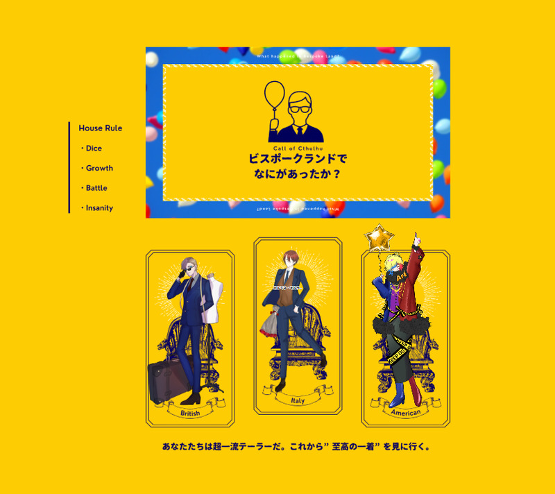 kao_o8☆quiet followMEMO≪ ビスポークランドでなにがあったか? ≫ KP:田中田 さんHO1 英国テーラー:レナード・A・ホーキンス / キリダさんHO2 伊国テーラー:カルミネ・オルランド / 梶原さんHO3 米国テーラー:アート・ニューメーカー / 果尾✧✧2025.3.8~2025.3.17 #卓報告 tabletopReport Tap to full screen (size:840x748).Repost is prohibited Let's send reactions! freqpopularsnackothersPayment processing Replies from the creator Follow creator you care about!☆quiet follow kao_o8SPOILERゾディアックスクール 十二星座館殺人事件 y/nどちらも現行未通過✖ ゾスク現行陣は◎どうしてもこれが描きたかった…… 13 kao_o8MEMO≪ ビスポークランドでなにがあったか? ≫ KP:田中田 さんHO1 英国テーラー:レナード・A・ホーキンス / キリダさんHO2 伊国テーラー:カルミネ・オルランド / 梶原さんHO3 米国テーラー:アート・ニューメーカー / 果尾✧✧2025.3.8~2025.3.17 kao_o8SPOILERもちもちの中身 kao_o8MEMO戦百合! 2 related works text_7DOODLE2025.07.09「黒いガレー船」PL まいまいさん、えびさん、ももしゃさん、獅子飼いさん温水 海斗、温水海里、紺野 秋永、葉山 湊 ヤマシタSPOILERCoC『OBLIVION』制作:犬点書店 様KP: ヤマシタHO1:Arthur Edward Wellesley /なつこHO2: Lucian Azure Beckett/るもちゃんHO3: Albert Tim Illustrious/まげる先輩HO4: Lucas Illustrious/ろびん先輩END-Ω 全生還プリンセスカレッジよ 無窮なれ ヤマシタSPOILERCoC『REGICiDE』制作:犬点書店 様KP: ヤマシタHO1:Arthur Edward Wellesley /なつこHO2: Lucian Azure Beckett/るもちゃんHO3: Albert Tim Illustrious/まげる先輩HO4: Lucas Illustrious/ろびん先輩END-A 全生還プリンセスハウスよ 永劫なれ かれいINFOCoc【ゆれるフリルにくちづけて】黒柄 エチル様・作PC/PL:カエデ/ちゃろKPC/KP:赤城 駿河/かれいEND.B にてシナリオエンド 2 Zun_KomameINFO『REGlCiDE』作/犬点書店 様KP:BisqueさんPL:三井圭さん(セレスティン・ムーガイ) ベジタリあんどうさん(ルイス・スミス) こまめ(ガラハッド・ファーノン) 希崎ひねもさん(パーシヴァル・ファーノン)生還にて終了です!よかった~~~!!!次はオブブブ!!!!💪💪⚠️ネタバレ落書きアリ⚠️PW:ok 8 ヤマシタSPOILERCoC『sleep-walker』制作:蛙屋 様KPレスPC:Theodore・UttersonエンドB→D(処理ミスを発見したので)出目がカス! 睡眠の質もカス! 2525hinoesenINFO❚ ᴄᴏᴄ ᴛʀᴘɢ✦ 星が落ちた日|𝐄𝐍𝐃-𝟏𝐊𝐏 - ひのえ𝐏𝐋▸ 𝐇𝐎𝟏 - 飌雷 嗄綑様▸ 𝐇𝐎𝟐 - 日向様 ZUTTOGAMESDOODLECoC「Gin・Craze」 ヤマシタSPOILERCoC『ここ掘れ!メルゴー!穴掘りカレッジ!』制作:犬点書店 様KP: ヤマシタHO1:Arthur Edward Wellesley /なつこHO2: Lucian Azure Beckett/るもちゃんHO3: Albert Tim Illustrious/まげる先輩HO4: Lucas Illustrious/ろびん先輩プリンセスハウスよ ムキムキなれ