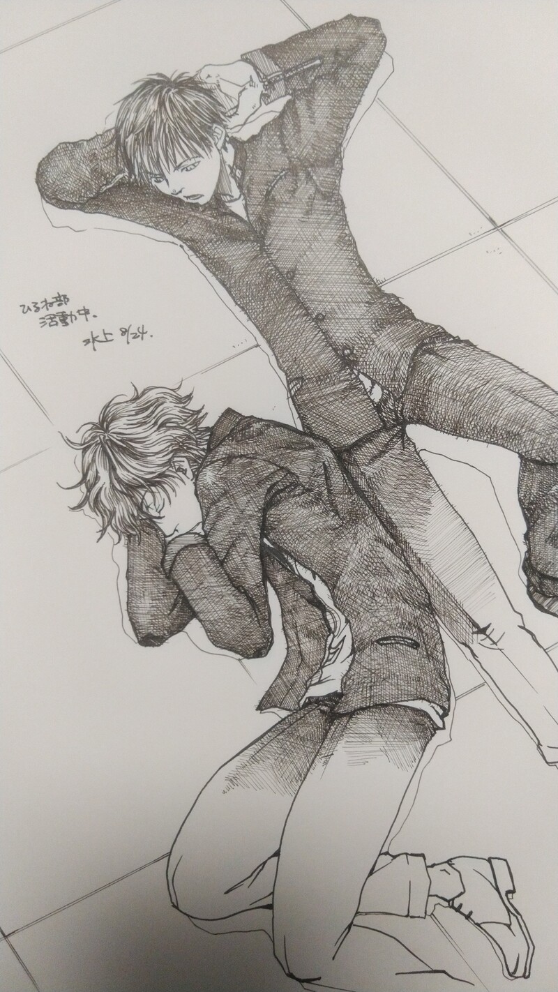 天香學園ひるね部(仮称)のおふたり。天気良くても冬なので暖をとって丸まって寝る。