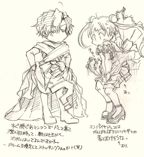 #本日のらくがき_KosM 詰め合わせ。ドレスしゅみな、ジャージのしゅみな+双樹さん。