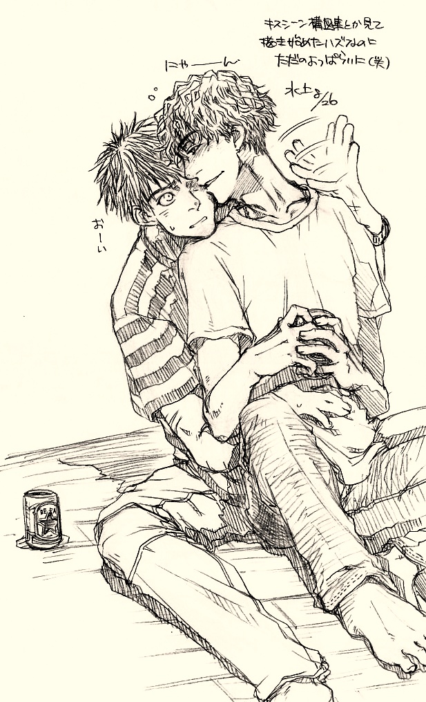 #本日のらくがき_KosM 「よっぱらいもーど」という仮タイトルでつづいていた(らしい)、よっぱらい甲ちゃんが九ちゃんに絡んだり迫ったり脱いだりするやつ、まとめ。最後のはリベンジだったり関係ないらくがきだったり。途中から脱いでるのでいちおうアラート付きで。