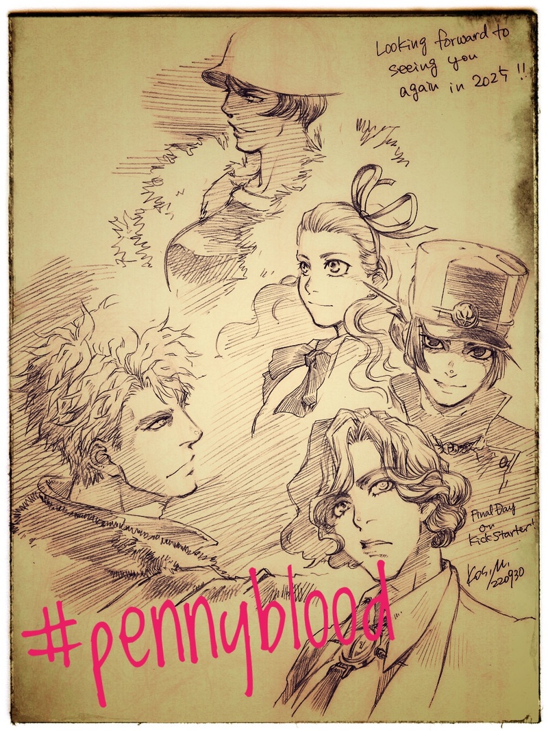 #本日のらくがき_KosM クラウドファウンディングの期間中に描いた Penny Blood ファンアート。2025年完成予定なのが待ち遠しいです。