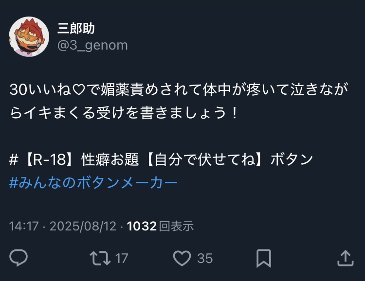 さぶろ〜すけ R18 炎受け表に出せないもの倉庫成人向け/落書き/途中経過エロは酒飲まないと描けんいっぱい送ってください↓↓↓ ☆quiet follow Yell with Emoji Tap the Emoji to send POIPOI 5