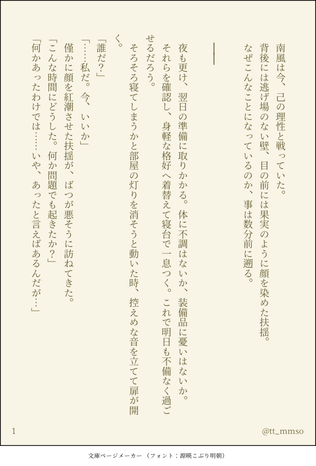 tt_mmso☆quiet followDONE夜更けに南風の部屋へ訪れた扶揺の話 show all(+3 images) Tap to full screen (size:630x928).Repost is prohibited Let's send reactions! freqpopularsnackothersPayment processing Replies from the creator Follow creator you care about!☆quiet follow tt_mmsoDONE久しぶりすぎてどんな話って要約すればいいかわからないんですけど、とりあえず付き合う前の南扶です。 4 tt_mmsoDONE11/26 風情韻事 扶揺アクキーの交換募集出していたものです(フォーム締め切ってます) tt_mmsoDONE11/26風情韻事 展示ですps→18歳以上ですか? y/n tt_mmsoDONE性癖詰めた扶揺⚠️tkb tt_mmsoDONE疲れが滲む南風を扶揺が癒してあげる話 3 tt_mmsoDONE🐰扶揺(8/2と約1時間)