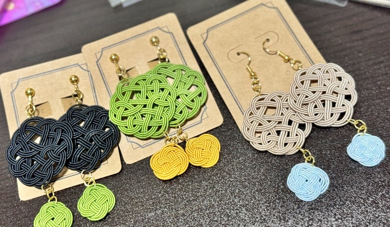 左と真ん中はイヤリング、右はピアスです