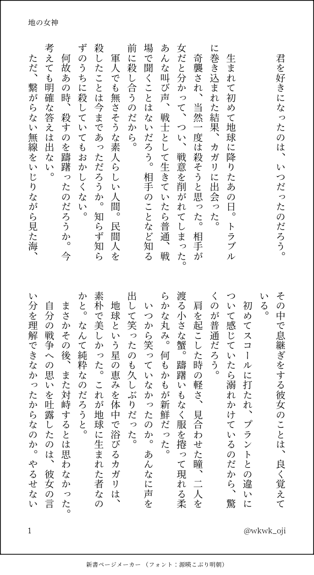 wkwk_oji☆こそフォロ過去のを晒すファーストミートを控えたアスランがカガリとの出会いと自分の今までの行動を振り返る話 すべて表示(+8枚) タップで全画面(原寸:618x1132)無断転載禁止 リアクションをたくさん送って応援しよう! よく使う人気おやつその他支払処理中 作者からのリプライ 気になる人をどんどんフォローしよう!☆こそフォロ wkwk_ojiできたエメナイ16開催おめでとうございます!(新作)💋話予定していた新作じゃないのですが、お祭りの賑やかしになれば! 4 wkwk_oji過去のを晒す2026年あけましておめでとうございます🌅姫はじめ感の薄い姫はじめ話(⚠︎結婚後)🔞アスカガ 10 wkwk_oji過去のを晒すショック療法清算するアスカガの話途中だったのを書ききりました🐢※ユウナのことを未だに許してない人間が書いている 33 wkwk_oji過去のを晒す🔞🪒アスカガ先に謝っておきます。ごめんなさい。 8 wkwk_oji過去のを晒す🍒食べてふわっとした話をするアスカガの話人生、漠然とした不安を感じるときある 6 wkwk_oji過去のを晒す🔞フロントホックとあれやそれアスカガ(⚠︎カガリが頑張ってるところあり)ナチュラルに結婚しているふたり 16