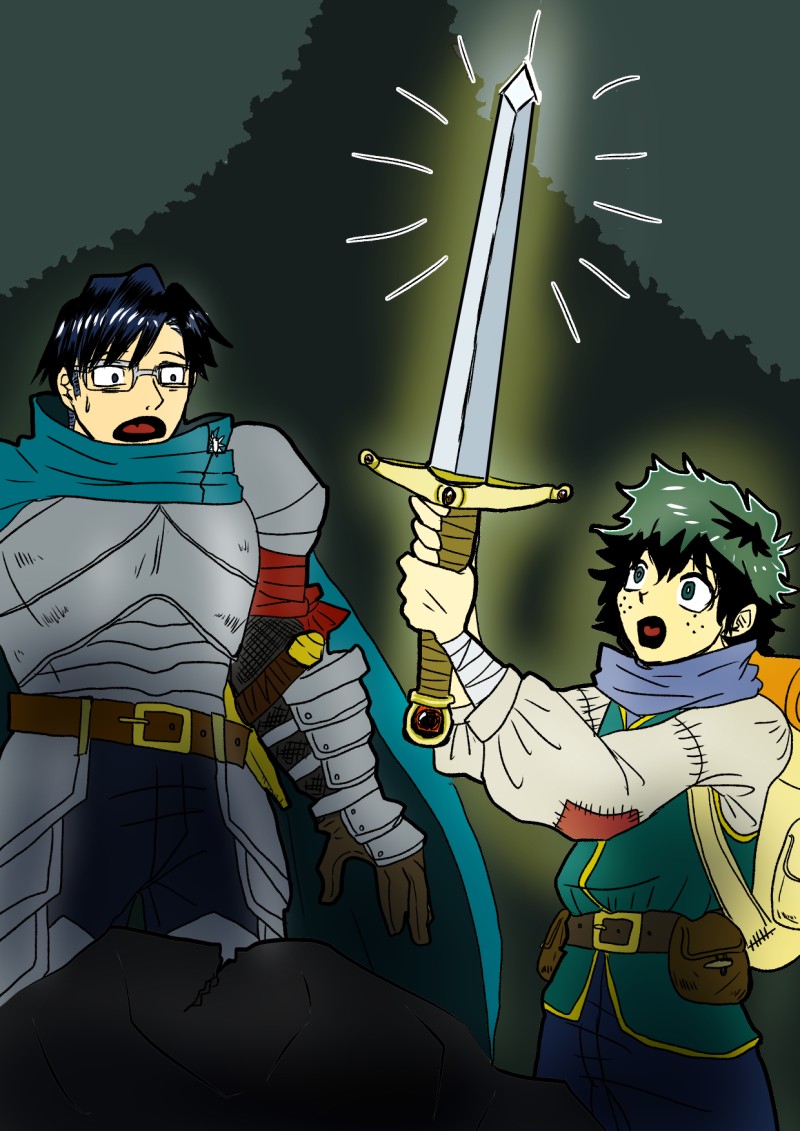 騎士に同行していた村人が、誰も抜けなかった伝説の剣をすっぽ抜いたところ。