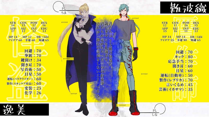 メイガス☆quiet followSPOILERクトゥルフ神話TRPG「レプリカントの葬列」第9陣目で用いたイラスト達。シナリオの展開バレがあるのでご注意ください。フリー素材を加工したものも利用しています。保存はセッションに参加したお二人のみでお願いします。 show all(+3 images) Tap to full screen (size:1920x1080).Repost is prohibited Let's send reactions! freqpopularsnackothersPayment processing Replies from the creator Follow creator you care about!☆quiet follow メイガスDOODLECoC「最果てまで。」をHO1で通過する悠葵ひなた。 2 メイガスDOODLECoC「ヴェルネの天使は死を歌う」を通過するMichele Delfino (ミケーレ・デルフィーノ)2025/10/21 未通過時点の自陣落書き追加 3 メイガスDOODLECoC「愛罠蜂」をHO2で通過した甘雫 苺愛。 3 メイガスDOODLECoC「ビスポークランドで何があったか?」をHO2で通過するElio De Luca(エーリオ・デ・ルカ) 2 メイガスSPOILERCoC「死んでも筆を折るものか」をHO2ゴーストライターで通過する角石亜嵐。2025/8/30 DAY3のとあるシーンワンドロらくがき追加2025/9/12 DAY5の落書き追加 4 メイガスDOODLECoC「サイレン清掃会社」をHO2で通過する未黒二千翔。 2 recommended works unzbooDOODLE今天的饭 2 蒙面nekoooDOODLEsc 水面(minamo)DONE食屍鬼街に遊びに来てるジョナサン🍽 3 ベビーチーズDONEロゴス先生 つけ麺DOODLE父水漫画二本立てです ずっと下品な下ネタです 3 planarian0idMEMOPL/満たして‼︎ akeshuisrioDOODLE画的时候被自己的人体气笑了但是画都画了是吧 るるる@腐DOODLE成人の日でしたね。ゼオン先輩とノア後輩初飲み。実はノアの方が酒が強い気がする。そしてゼオンは弱そうな気がする・・・! nu_nuedaneDOODLE猪七バカエロおねだり7️⃣(IQ3下品)成人済みですか(y/n) 2074