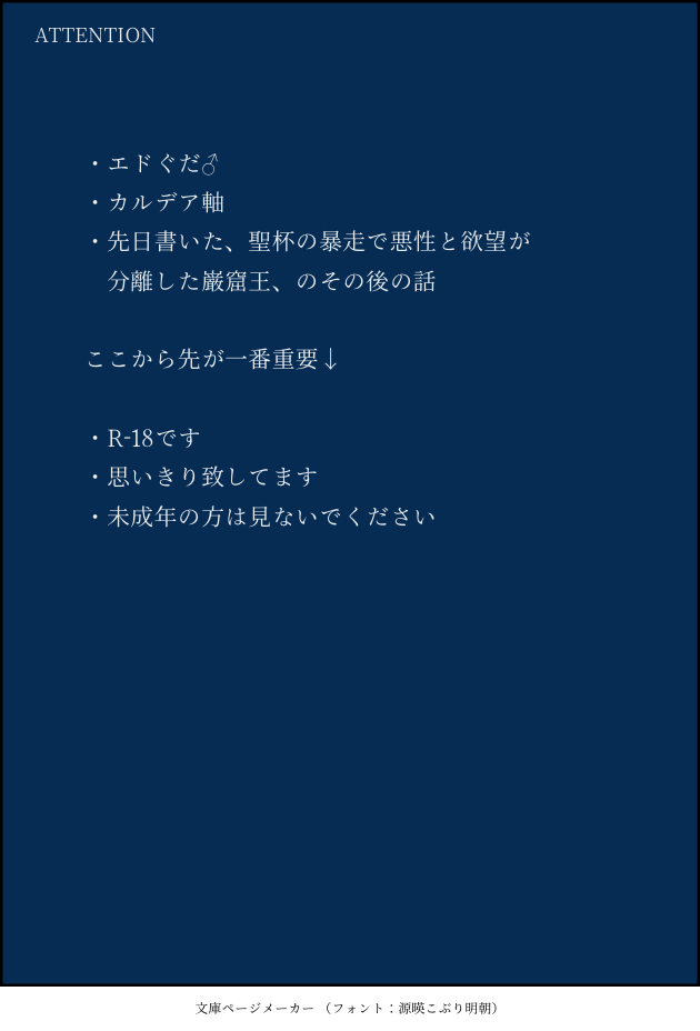 kunikitatatata☆quiet followDONEエドぐだ♂🔞パスワード↓成人してますか?(yes/no)先日書いた、聖杯の暴走で悪性と欲望が分離した巌窟王、のその後の話思いきり致してる。未成年の方は見ないでください。誤字脱字等はいつか改めて支部なり本なりにまとめる際に直します。 show hide show all(+15 images) Tap to full screen (size:630x928).Repost is prohibited Let's send reactions! freqpopularsnackothersPayment processing Replies from the creator Follow creator you care about!☆quiet follow kunikitatatataDOODLEy/n?ざっくり設定。 ・ルームシェアをしていた二人。 ・両片思い。(それぞれお互いに女性のことを普通に好きだと思っている) ・ダンテスが女性といるところを見かけるリ。恋人と勘違い。自分から離れることを決めて、ルームシェア解消を打診。←この直後ちょっと無理yrっぽいのでご注意 2233 kunikitatatataDOODLEファンSS狂いをありがとうございます🌹パス:🌹パロあげられていた日(4桁) 5 kunikitatatataMOURNINGカー🚗セクエドぐだ♂(受肉)🔞成人済み?y/n 3117 kunikitatatataMOURNINGエドぐだ♂※決意未練サンド3P ※W巌はどちらも攻ですイド後。不具合で決意未練どちらも霊基登録されちゃってどちらもカルデアに残ってるご都合If前半がっつり挿れてるが、W巌ぷれーになってからはいれてない。Pass→成人済? y / n 5872 kunikitatatataDOODLE別荘田舎 5 kunikitatatataDOODLEにりつ3+ありがとうございました!とある夏の特異点在住のモブ山モブ子目線でお送りするエドぐだ♂です。「海の家にいるらしいイケメン店員を求めて」 3239 recommended works rntnxinranDOODLE交错(part1) 33 き なDOODLEジュンブラお疲れ様でした!お通販の方はとらのあなのほうへ!R18 なので注意→ https://t.co/0rLPqqJmPR screamwandererPROGRESS DJasvvTT5k27741SPOILER #この命が燃え月宮さけひよるまで累了と某NPCの導入編の会話が面白くて何度も視聴しては笑っていました! 2 ほや🐟DONEみちしるべ雨降りびっくりキッド 2 katanami0524DOODLEWMネタバレ!! あおいしょうPROGRESSハンジュンギはちびキャラじゃないけどリアルでもない。 kasou1005DONECoC『SSS.S』の自陣改造ねんどろいどドール写真です。ドールが苦手な方は見ないようにお願いします。ネタバレは特にありませんが私服を着せております。 4 @la_nuit36DONE表紙作るごっこ小アド編タントとかサーブルとかツヤ無し系の本体表紙で同じ紙使った帯とか楽しい…予算と納期の都合でなんちゃって帯にするやつートレペ帯もいいけど濃い色全体にのせたらしなしなになっちゃうやつ 3