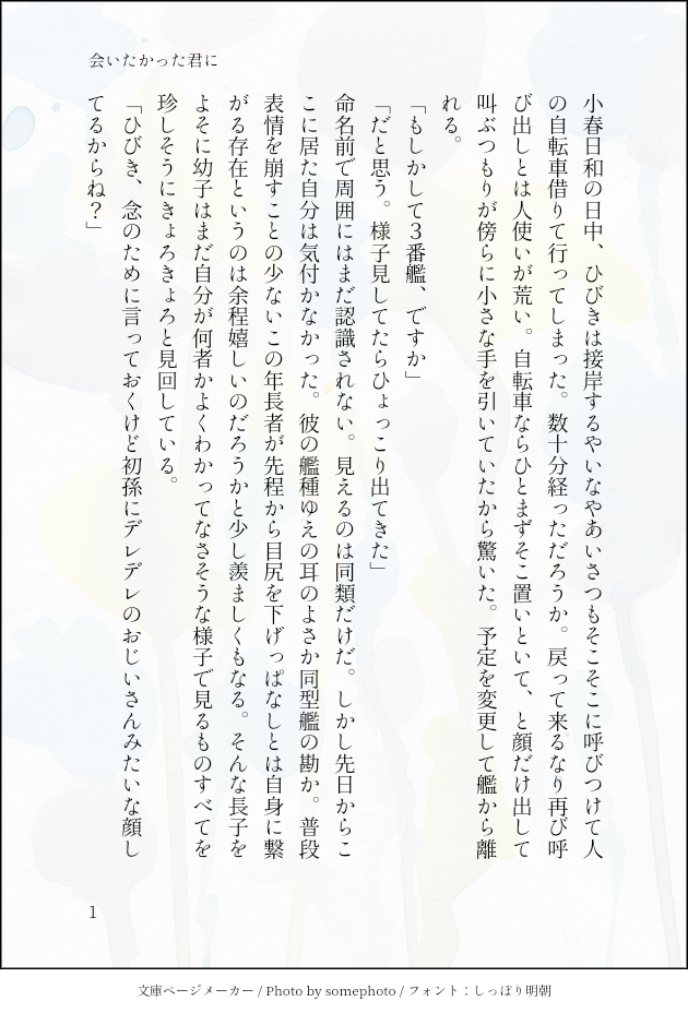 105@海自艦擬人化☆quiet followDONE5203進水記念。4001と5201の話。 #擬人化 Humanization #文章 articles ##本編 #3_affection show all(+1 images) Tap to full screen (size:630x928).Repost is prohibited Let's send reactions! freqpopularsnackothersPayment processing Replies from the creator Follow creator you care about!☆quiet follow 105@海自艦擬人化DOODLEかもめ(新幹線)とやはぎ(艦)。セルフクロスオーバーみたいなものです。 1383 105@海自艦擬人化DOODLE117+109。中秋の名月(遅刻) 784 105@海自艦擬人化DOODLEさんふらわあ新造姉妹です。いつのまにか脳内で喋っていたので出力。 362 105@海自艦擬人化DONE祝・118進水日!10周年おめでとう~! 703 105@海自艦擬人化MENU新刊 105@海自艦擬人化MEMO成長記録:②の場合(5203視点) 600 related works ヴィオレINFOアクキーを作ろうと思いました(版権擬人化:動物番長)1枚目がアクキーに使ったやつ、2枚目は人物が影になってないやつです。2018/12/17 出来上がったものが手元に届きましたのでboothの方にも設置したしました。在庫はかなり少ないのでなくなった際はメッセージなどでお知らせください→https://violet-viola.booth.pm/items/1139978 2 yomogimociPROGRESSイーブイはとりまオッケー。シャワーズの宝石💎どうしよう‥がんばる‥(・ω・) grass1jackPAST 2 桃色うさぎDONEホホジロザメの擬人化ちゃんです。来月のイベントでポスカとして頒布予定。#創作 #擬人化 きりゅーDOODLE父の日なので、ディズニーで好きな親子を。魚親子と犬親子です( ˇωˇ ) 2 おにぎりたろうDOODLE男村長×男住民擬人化でえっちなホモしかない#擬人化 #腐向け #R18 7 ...DONE #女の子 #擬人化 #たまご#創作 #オリジナル#アナログ #色鉛筆 comifusafusaDOODLE擬人化サミラちゃん のステージ衣装と普段着ツイッタ~で見た褐色肌のサミラちゃんがかわいいのとなるほどと思ったので忘れられん美虫さんだと思う ショウカHappy New Year【干支シリーズ】卯+猫+子