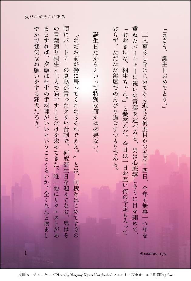 墨乃/sumino☆quiet followPAST5/14の🐍誕に流した同棲🐍🐉小話。 #真桐 Makiri show all(+2 images) Tap to full screen (size:630x928).Repost is prohibited Let's send reactions! freqpopularsnackothersPayment processing Replies from the creator Follow creator you care about!☆quiet follow 墨乃/suminoDONE6/17桐ちゃんのお誕生日真桐小説です🐍🐉真誕の時に上げたお話と同軸の同棲真桐でお送りします😌桐ちゃん誕生日おめでとう〜🎉🎂🎁🥂 4 墨乃/suminoPAST5/14の🐍誕に流した同棲🐍🐉小話。 3 related works nokibi_akiDOODLEセミドン ねぎニラPROGRESS多分完成したらフォロワー限定にします。 nokibi_akiDONE若島は意地悪 nokibi_akiDOODLEこちゅこちゅ nokibi_akiDONEどこのきゃばに行ってもゴロみが居てお持ち帰りさせられるきりゅちゃ。 nokibi_akiDOODLEがっつく兄さん(きりゅうちゃんが組に顔出したのかな?) nokibi_akiDONE女も抱いた事ないの、に…! nokibi_akiDONEさぁて、たこ焼きパーティーだ! 4 nokibi_akiDONE7.5まきり般狐 recommended works nokibi_akiDONE心の準備 身体の準備 5 nokibi_akiDONEどうしても、あんたが欲しい 5 momonemakiriDOODLE真桐(2人とも女装)漫画 5 シエルDONE「昼寝」 3 Towane_018DONEWoLGraha 18+ Password : Are you 18? yes/no? 2 GazKamurochoDONE会いたかった sugoku_zasshokuDOODLE 2 mary1201kmgnDOODLE teta4tateDOODLEコビヘルお題「嚙み跡」事後かどうかはわかんないけど裸ではあるのでご注意