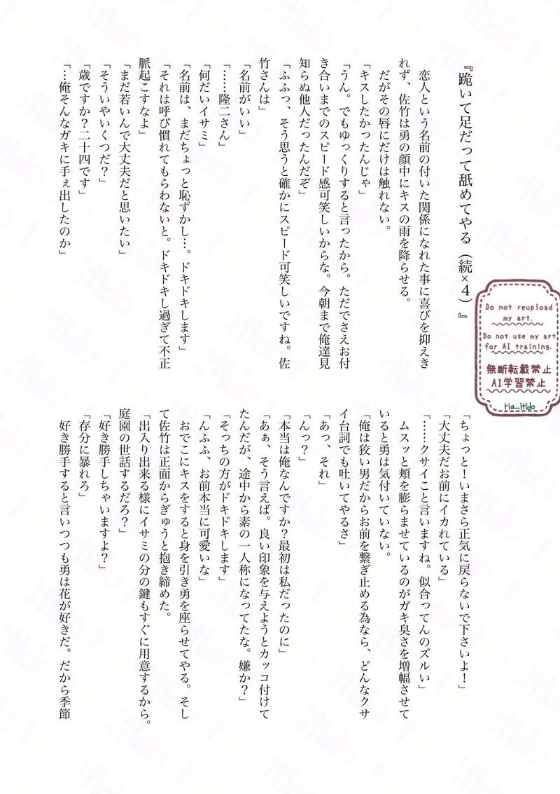 ria_itido☆quiet followDONEサタイサでヤ花完・結!ガーベラの花言葉ってロマンチックですよね show all(+3 images) Tap to full screen (size:934x1323).Repost is prohibited Let's send reactions! freqpopularsnackothersPayment processing Replies from the creator Follow creator you care about!☆quiet follow ria_itidoDONE先日のつっづーき!サタイサです。かわいそエンドになったので苦手な人はご注意ください 3 ria_itidoMAIKINGなんの脈絡もなく緊縛プレイのサタイサ今んとこイサが只々可哀想ですパスは18才以上ですか? 3 ria_itidoDONEエロにする予定じゃなかったサタイサワンワンプレイパスは18歳以上ですか? 3 ria_itidoDONEサタイサ足⚪︎キとフ⚪︎ラがありますので苦手な方はお気を付けくださいパスは18歳↑? 7 ria_itidoDONEサタイササタのSっ気が当人比5割増しですパスは18↑? 4 ria_itidoDONEサタイサでエロ素直にお願いしろよ!とお互い思っているパスは18歳以上ですか? 2 recommended works uMUST_raimuDOODLEヘッドシザーズ・ホイップ。原画リスト合計16枚。 18 もちむんDOODLE今まで描いたやつまとめ。後日支部に載せれたら載せる バニガあるのでワンク 6 l06_teDOODLEオメガバ室志特にヤマもオチもない 1538 アルジSPOILER※クック・ロビンの遺言 現行未通過❌卓中使ったネタバレ絵です。🐅 3 Mymymymmy_1212MOURNINGうちのハーネスです。アバターなので皆オーバーロード使えます、メカニック要らんやろオーバーロード。ダンボール戦機ウォーズは良いぞ 10 ゲストTRAINING Cucumber🥒DOODLEArts 19 あね犬ane_kenDOODLEAI学習妨害機能とかいうノイズをかけてみたんだけど、こういうゴチャゴチャっとした絵なら分からないかもしれない。2枚目からはノイズなしの単体絵です。ん?ネコ娘風の人?水木だよw#ゲ謎 #ゲゲ郎 #水木 3 cieDOODLE嵐で一杯 らくがきたち※ネタバレある 2