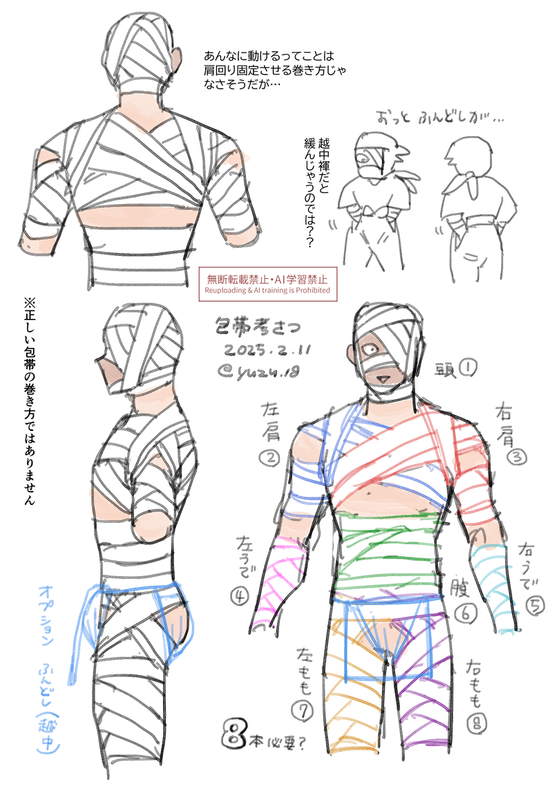雑の全身包帯どうなってるのか考えてみた。本数多すぎるよ…!!足りないよ…!!