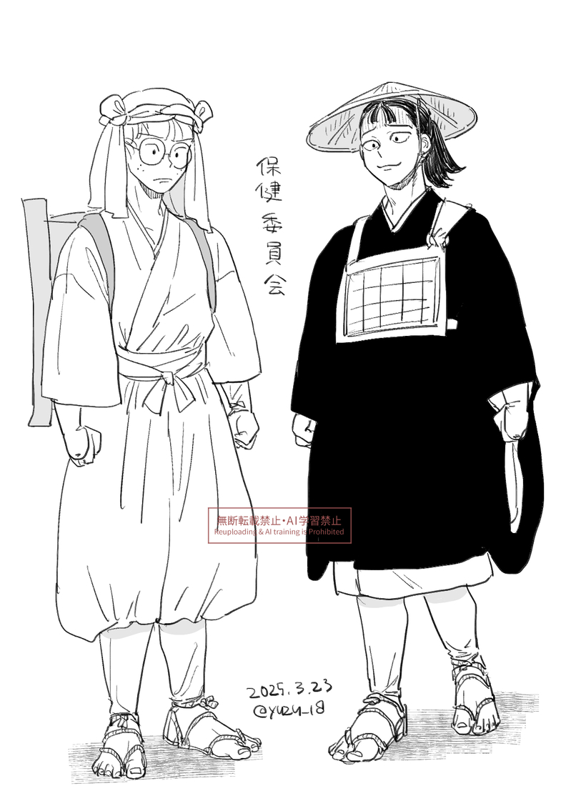 筆が乗ったので成長保健委員さんもう一枚。白黒。