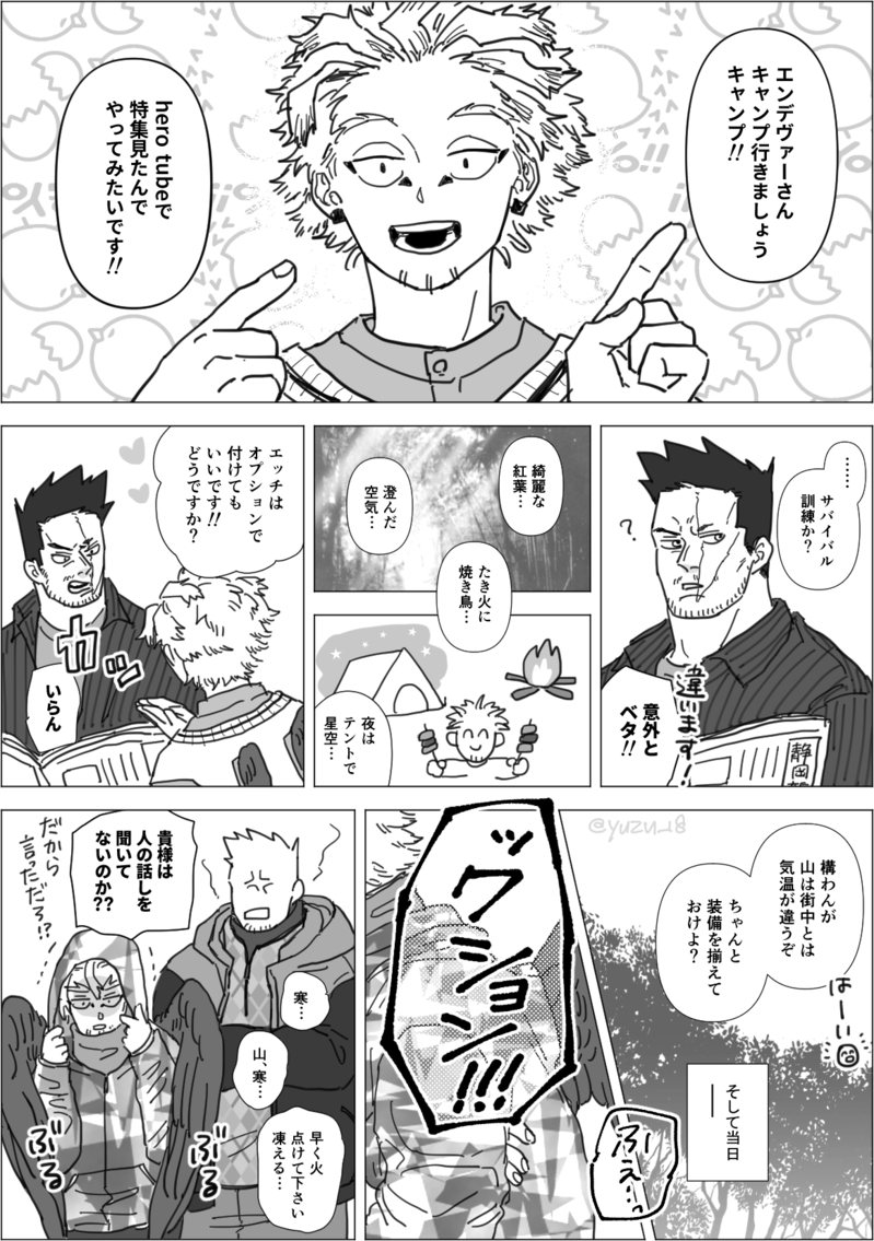 炎ホにキャンプ行かせたいね~!!というはなし。温めてもらおうね…#ゆずのぽいぴく
