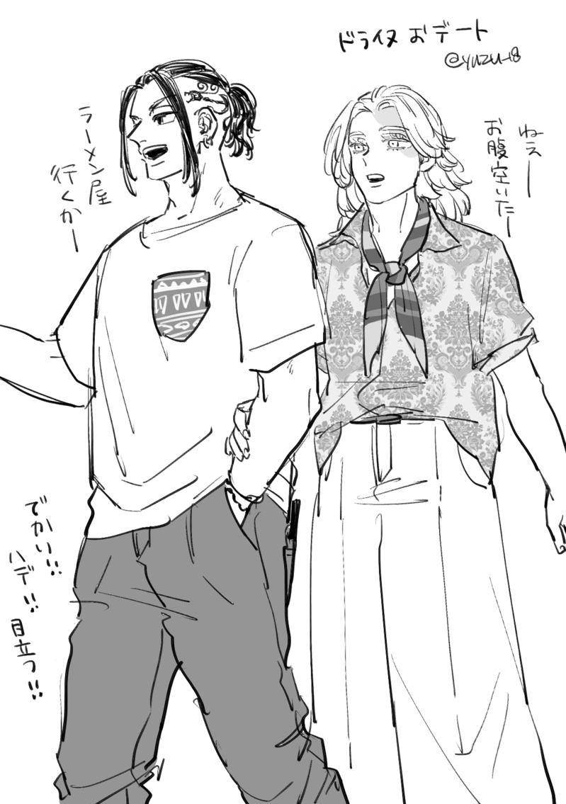 現代軸のドライヌ。人混みの中でもめちゃくちゃ目立つ二人。#ゆずのぽいぴく