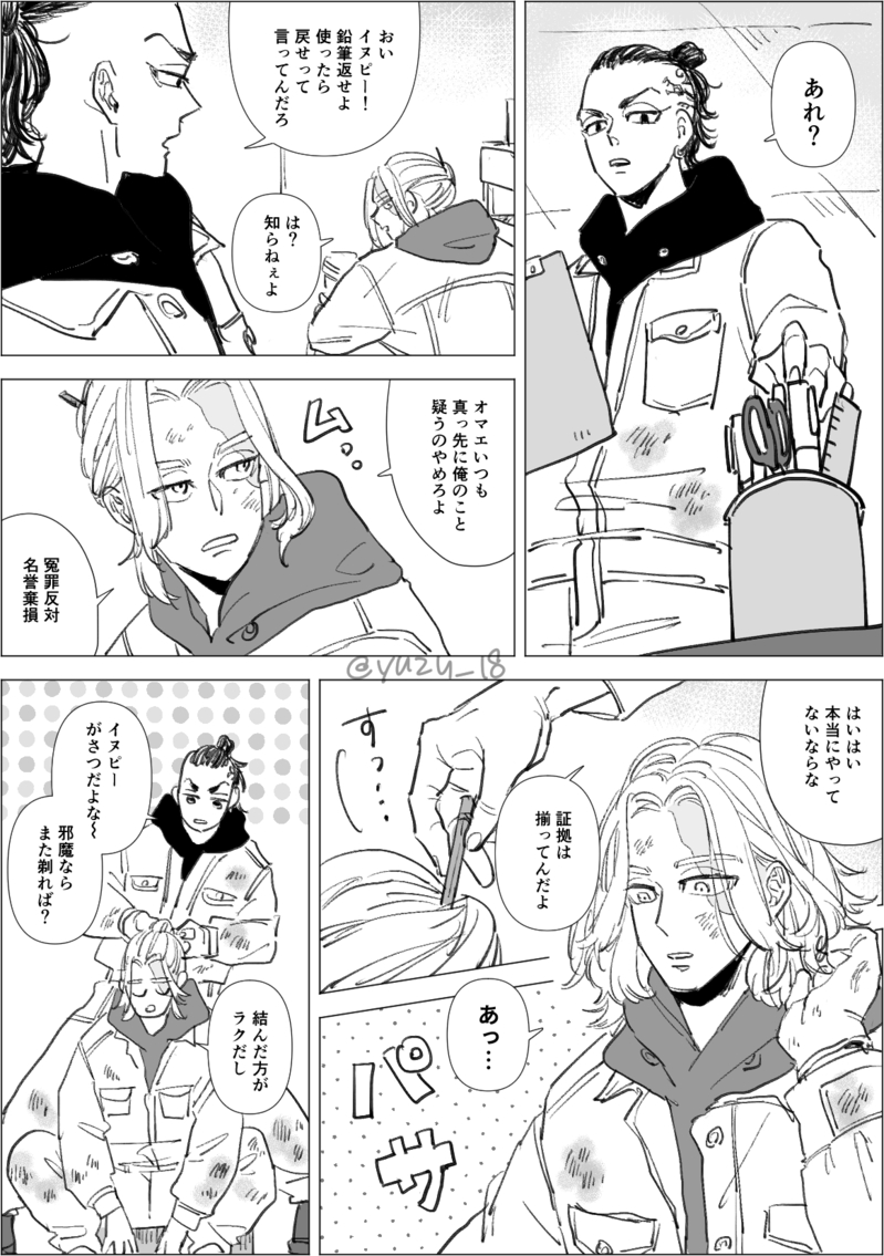 ドライヌ。雑に鉛筆で髪を留めてるぬぴぴ。#ゆずのぽいぴく