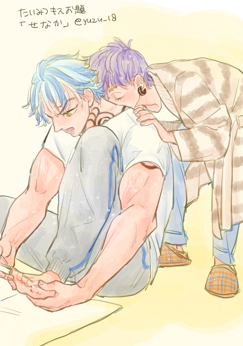 たいみつキスお題「せなか」冬休み中に終わらなくて延長です。無防備な後ろ姿見せてくれるのLOVEだよね。#ゆずのぽいぴく #たいみつキスお題