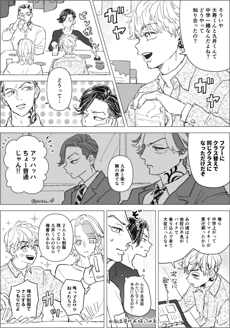 たいみつとここといぬ。何も起きてない軸の同級生飲みについてきたみつや。#ゆずのぽいぴく