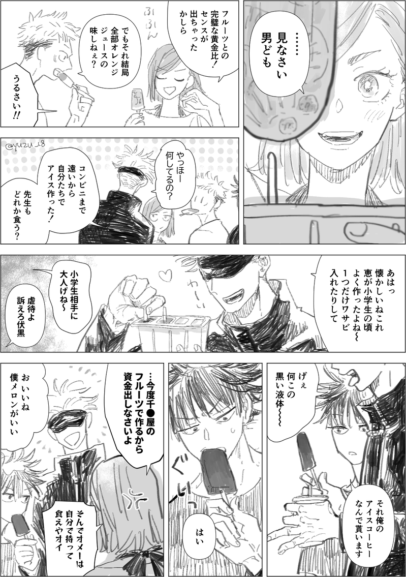 五伏と1年ズ。みんなで作るアイスキャンディーの話。#ゆずのぽいぴく