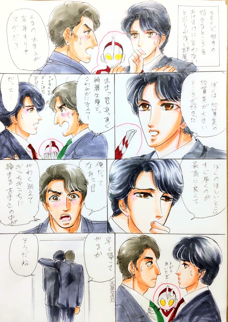 hidakamori1234☆quiet followDONE魔改造バースの加賀美✕神永前提。セッで相手の好きなとこをあけすけに言わないと出られない部屋の加賀美と神永。リピが珍しくツッコミです。 #加神 plusGod #しんうる #加賀美✕神永 Tap to full screen (size:2021x2847).Repost is prohibited Let's send reactions! freqpopularsnackothersPayment processing Replies from the creator Follow creator you care about!☆quiet follow hidakamori1234DONEコラボさせていただいた漫画と、お題ガチャネタの父水漫画をちょっとまとめました。描いててめっちゃ楽しかったなぁ😆 2 hidakamori1234DONEコラボさせていただいたのをまとめました。皆様、御快諾ありがとうございました💖 5 hidakamori1234DONEぱやたん印のはちみつはきっと万能薬なんですよ。御礼にみんなでおめかしして某温泉にカチコミに行きます 2 hidakamori1234DONEもちうさみじゅのお盆です。父水前提で、モブがけっこう出てきます。 5 hidakamori1234DONE傷痕愛用父水新作その2です。闇の父水ウェブオンリーに出せなかったリベンジで描いてます。いまいちダークになってないポエムです。 4 hidakamori1234DONE傷痕愛用に描いた父水新作その1です。指輪で盛り上がった勢いで描いてます。 7 related works hidakamori1234PROGRESSまたまた加神がいちゃいちゃしているだけの、顔漫画ですよ。まだ下描きです。 hidakamori1234DONEまたまた魔改造バース捏造設定の加賀美✕神永のいちゃらぶです。ピロートークでこんなこと言い合ってますよ。 3 hidakamori1234DONE公安ハニトラ任務時代から、融合後までの加賀美✕神永ゆるふわえろギャグです。モブ永あり、緊縛あり注意。 4 hidakamori1234PROGRESSしんう魔改造バースの加賀美✕神永漫画を描いてます。ミラーマンである加賀美と愛し合い、奇跡的にたくさんの命を宿した神永。リピと如月のえるを蘇生させ、ちまぴを生み出した直後の神永と、彼を見つめる加賀美のお話です。 hidakamori1234DOODLE大遅刻したバニーの日のバニー神永。耳もしっぽも生えてます。なんか左利きになっちゃいました。すんません。銃は久しぶりなので見逃して♪エーベルバッハ少佐と同じ銃なんだね、こーあん。りぴはシャボン玉風になり、護衛してます。加賀美は呆れながら一緒にバーテンダーで潜入中。 hidakamori1234DONE魔改造バースの加賀美✕神永前提。セッで相手の好きなとこをあけすけに言わないと出られない部屋の加賀美と神永。リピが珍しくツッコミです。 hidakamori1234DONEしんうる魔改造バースの加賀美✕神永漫画。いちゃいちゃしてます。逆バニー神永注意で、サトメもいます。神永はリピと如月のえるとちまぴの母です。 5 hidakamori1234DONE魔改造バース加賀美✕神永前提の、神永新二のインナースペースの逡巡と葛藤。元の人格である如月のえるへ、躯を返そうとするが…… 7 hidakamori1234DONE魔改造バースの加賀美✕神永の良い夫婦の日ですよ。神永「なんか、ぼくばっかりよがってるよね。加賀美はそんなによくないのか?」加賀美「え、かわいい、好きだって言ってるし、よく締まってギチギチだとか、言ってるじゃんよ」神永「良かった」 recommended works hidakamori1234DONE捏造設定しんうる加賀美✕神永。公安時代のハニトラ任務のための、初めての二人。神永は如月のえるをベースにした、別人格だけど、のえるの加賀美を愛している部分だけでできています。 14 hidakamori1234DONE公安ハニトラ任務時代から、融合後までの加賀美✕神永ゆるふわえろギャグです。モブ永あり、緊縛あり注意。 4 hidakamori1234DONE加賀美✕神永、間宮✕のえる、サトル✕メフィラスも前提な、捏造設定だらけの魔改造バースのオールキャラギャグ。加神セッ描写ありです。 5781 hidakamori1234DONEネロンガ戦のあの邂逅の森の物語。リピは号泣し、神永が瀕死で流血表現あり。捏造設定なので、神永の本来の人格は「如月のえる」(BoysLoveってビデオの主役)で、その記憶は封印中。彼の恋人の間宮諦信や、ミラーマンである加賀美も関わっています。加賀美✕神永、間宮✕如月が前提です。 9 hidakamori1234DONE捏造設定満載の魔改造バース話です。「邂逅の森」のプロローグで、「BoysLove」のラストから、如月のえるが神永新二として目覚めるまでと、リピアーとの融合後です。加賀美と神永の融合後の初エッに至るまで。 7 hidakamori1234DONEしんうる魔改造バースの加賀美✕神永イチャイチャです。今までの経緯もあり、加賀美は神永が嫌がることを絶対したくないマンなんですよ。 3 hidakamori1234DONEしんう魔改造バース加賀美✕神永のハム安特殊任務時代のお話。神永はその父親からの虐待的な扱いにより、はにとら任務につかされ、その「女衒」な監視任務を加賀美が負っています。それに抗う二人。 12 hidakamori1234DONEしんうる魔改造バースの加賀美✕神永漫画。いちゃいちゃしてます。逆バニー神永注意で、サトメもいます。神永はリピと如月のえるとちまぴの母です。 5 hidakamori1234DONE魔改造バースの加賀美✕神永前提。セッで相手の好きなとこをあけすけに言わないと出られない部屋の加賀美と神永。リピが珍し