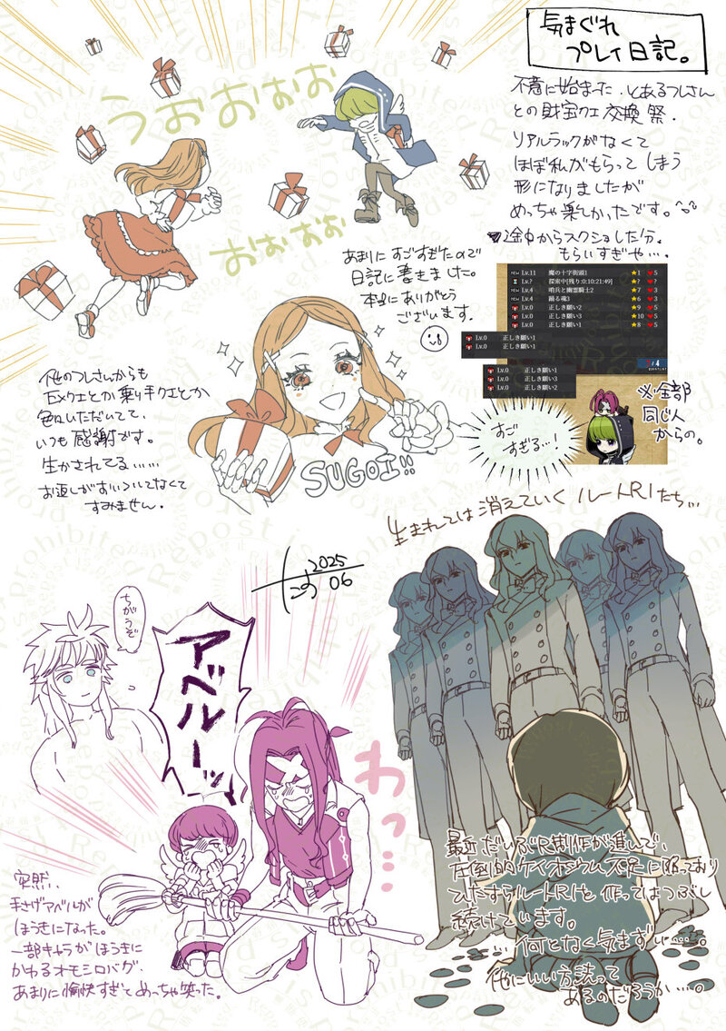 +たす☆quiet followDOODLE[UL] 久しぶりの日記。(2025/06) Tap to full screen (size:930x1320).Repost is prohibited Let's send reactions! freqpopularsnackothersPayment processing Replies from the creator Follow creator you care about!☆quiet follow +たすDOODLE[UL] 久しぶりの日記。(2025/06) +たすPAST[UL] 旧版でブラウのアバターをもらって、白靴下を履いてることに衝撃を受けたときの漫画(?)一回Xに上げたんですがこっちに上げ直し。/2012年 5 +たすDOODLE[UL] ヴォランドR5 がっつりネタバレらくがき +たすPAST[UL]アベルが復活したときに描いた漫画。(2013)色々考察しながら、親友はこれからどうなるんかなあ……と思いながら描いた記憶があります。あと上げ忘れてた復活レオンのらくがきを一枚いれてます。(こっちは2014)レオンは復活する時まで、目のパターンが2色あったんですよね。ピンクも可愛くて好きだったな。 2 +たすPAST[UL]2013/12/25に描いたちょっとした漫画。 5 +たすDOODLETOR20周年おめでとう駆け込みらくがき。樹氷ペア大好きだけど、初めて描いた…。