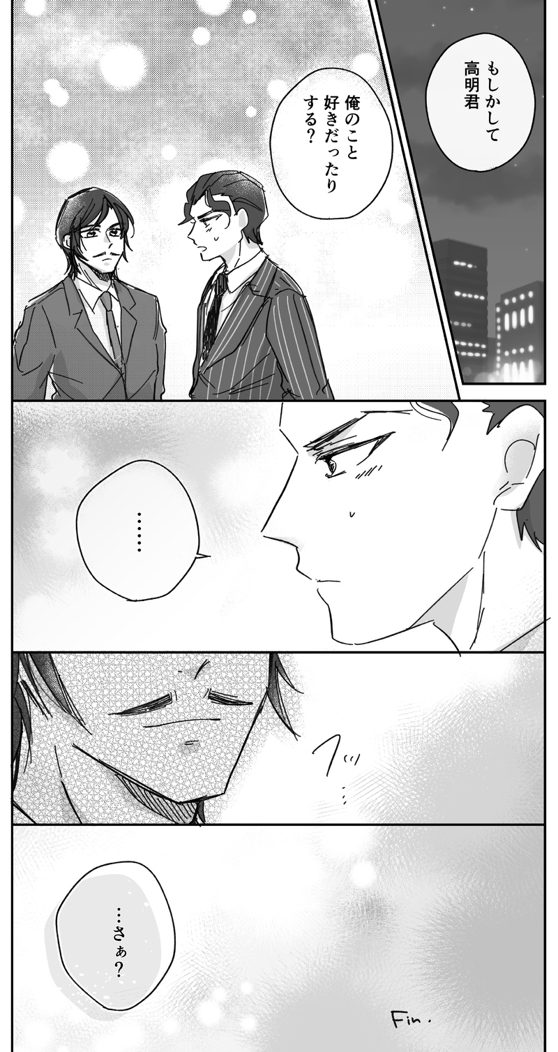 「そうだと言ったらどうしますか?」とは言わないし聞かない…脈ありなのわかってるからのらりくらりとかわす大人のずるさ…!ようやく気付いてくれましたか?という15年分の恋心よ…