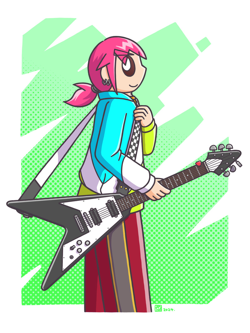 …というわけで久々のお絵描き投下、フライングV装備の駆氏でございます。エレキの細々したパーツを描くのは実に楽しい…!駆氏もキリッとした感じに描いてあげられたと思うよ…!