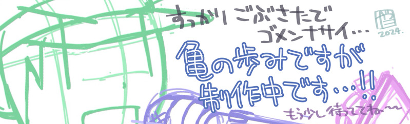 いまいち筆が進まない上にいろいろ忙しくなってしまい、お絵描きが進んでない日々でございまして…でもそんな中でも少しずつ描いているものはあるので、ひとまずは完成できるよう頑張ります…!