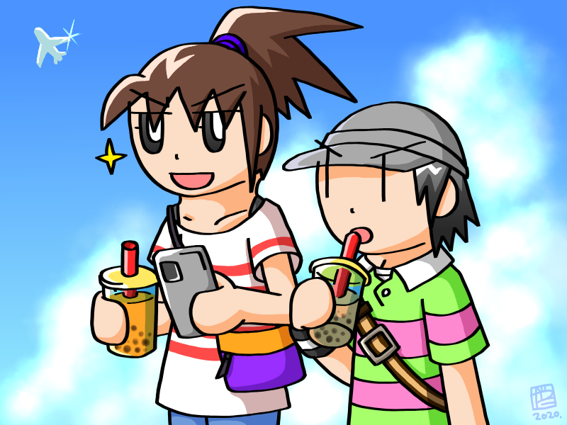 タピオカドリンクをいただくなかよし2人。