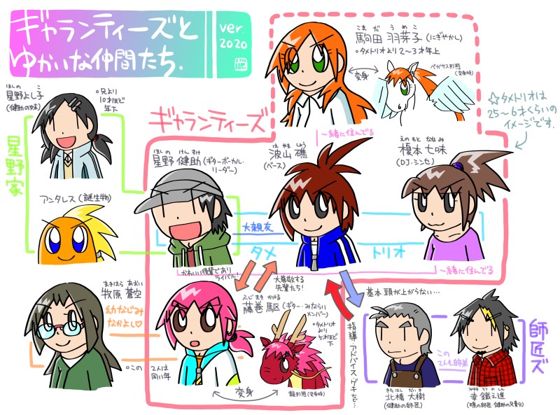 年の初めにオリキャラ達の相関図的なのや、今まで脳内にあったけど説明してなかった設定(&NL要素)の説明メモを整理してました。これを見ればギャランティーズとゆかいな仲間達のことがよりわかる…かもしれない!?