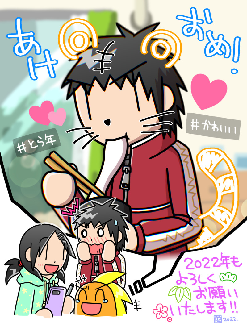 てなわけで描き初めの一枚、お正月にワイワイする星野家の面々です。健助氏は写真にお絵描きされちゃったようですw