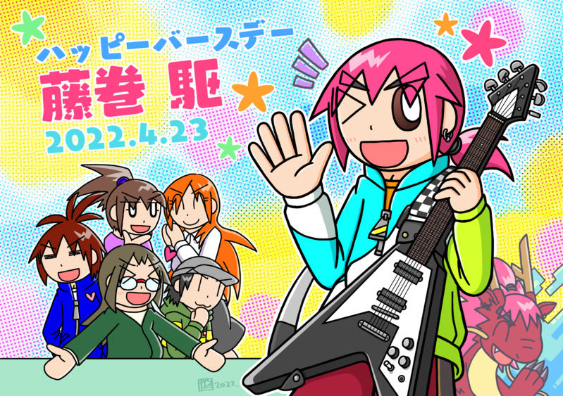 4月23日は当方オリキャラの一角であり、ギャランティーズのフライングV持ちおだやかドラゴン後輩くんこと藤巻駆氏の(設定上の)お誕生日でした!ので、先日お誕生日だった羽芽子さんに続いてお祝いの1枚、毎度遅刻でごめんね&おめでとう!