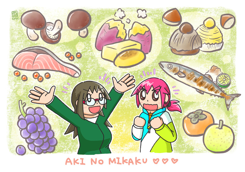 これからの季節のお楽しみ・秋の味覚大集合!あおいさんと駆氏の食いしんぼトークにも花が咲いているようですね。美味しいからって食べ過ぎには注意ですよ…!