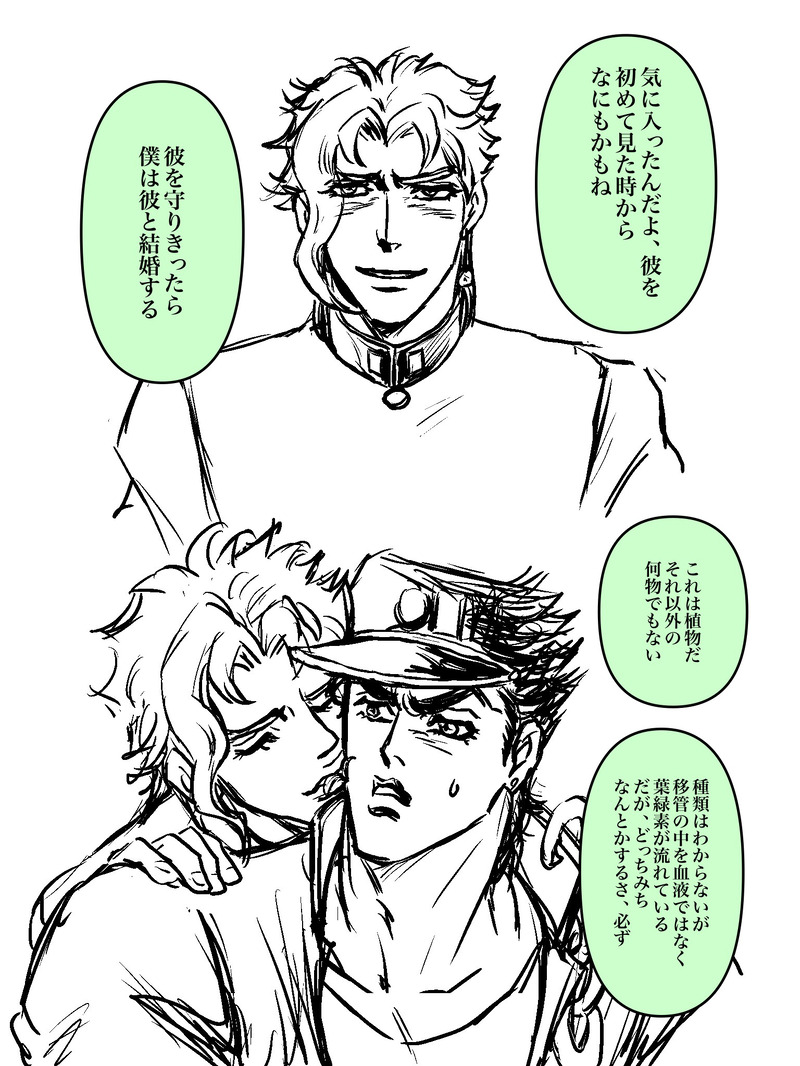 と久々に滾ったけど誰も描いてくれないでしょうから自分で描きました。花京院にはこういうセリフが似合う!(というかこういう花京院が好き❤️)