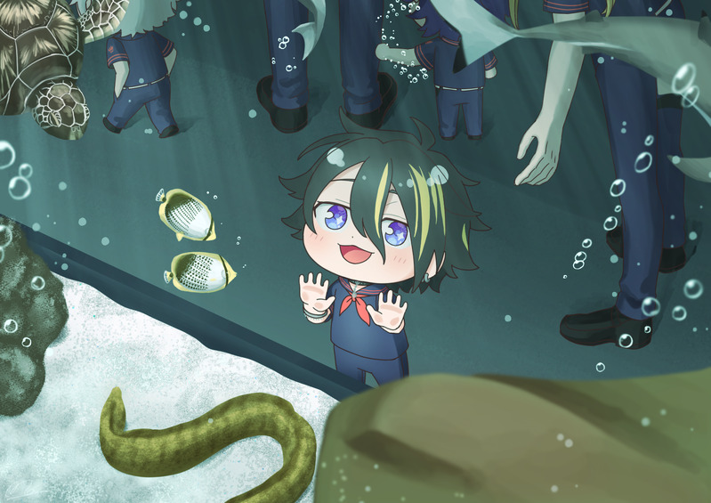 来る水族館コラボのSDが可愛くて可愛くてばぶだったので(?)描きました!水族館好きなのでうれしい💕💕精一杯絵柄を真似させて頂きました、絵師さま最高に可愛いSD絵をありがとうございます……!!