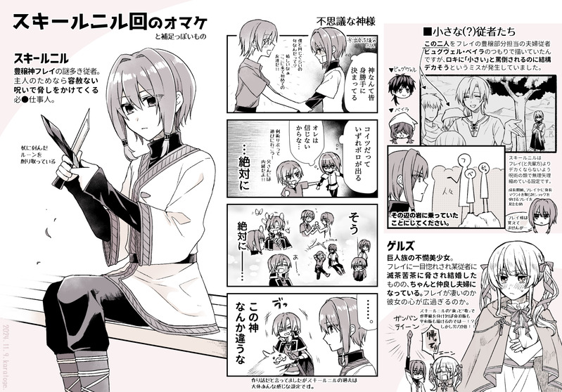 karatoge.☆quiet followDOODLEスキールニル回のオマケ&補足です。私の持っている本のスキールニルは怒涛のゲルズ脅迫パートで一人称が「ぼく」→「おれ」になっていて大変アツかったです。ゲルズが可哀想なのは本当にそう。いつか持ってる本の紹介とか出来たらいいですね。 Tap to full screen (size:2000x1397).Repost is prohibited karatoge.DOODLE※学パロ(2枚目)お礼絵の供養です🍻🍩前に描いた寿司を食べるロキのように、いただいた応援絵文字にお礼絵を描こうと計画したんですが、全ての反応に絵を描く様は一周回って恐怖ではと思い、2枚でやめておきました。描いたものに反応をいただけるのはとても嬉しいです。直近で絵文字をくださった方もありがとうございました!🙏✨活力になります 2 karatoge.DONE※学パロ※間に合っていないエイプリルフール(一部を除き)恋愛ADV『ようこそアースガルズ学園/文化祭編』(仮題)20XX年4月1日リリースに向けてそのうち制作予定!アースガルズ学園の文化祭実行委員として自称神の生徒たちとそこそこにラブコメしつつラグナロク祭(※)を勝利へ導こう!(※ヨトゥンヘイム高校と対抗して行われる文化祭と体育祭) 2 karatoge.DONE※某お正月番組パロ🎍新年ですね!今年もよろしくお願いします!!(遅刻)違う配置にする予定だったので身長差ガン無視です…しかも見づらくて申し訳ないです…そして新年早々申し訳ないことに、時間を確保するのが難しくなってきたので、しばらくポイピクとくるっぷのまとめの更新が不定期になります…!すみません!🙏2話の進捗とゆるい落書きを上げる予定なので気が向いたら見に来てやってください🙇 karatoge.DONEポ●キーの日漫画⑤【完】オーディンがワイン生活の影響で大会後胃もたれしたというオマケ漫画も描く予定だったんですが、不憫に次ぐ不憫だったのでやめました。今年分のポイピクでの更新は今回が最後です。お付き合いいただきありがとうございました!くるっぷには12月末にまとめます。よいお年を! karatoge.DONE12月も元気にポ●キーの日漫画④バルドルがいるページは不思議と白い。来週終わります。 2 karatoge.DONE大遅刻ポ●キーの日漫画③お察しかもしれませんが、四コマの本数が多かったので今回は1ページ2本立てでお送りしています。再来週には完結するはず… 3 recommended works けいねDOODLEおせち作り弊本丸はグループに分かれて一人一品おせちを作るきっと楽しいし美味しい、話も弾む! 2 iti_tfDOODLEAスィンとフェラ&えっち※人間夢主 nny_no_trpgDOODLEroute-C2024/11/13~12/29KP/ななやPL/灰出、すいばり、那須井なこ 玉井くんDONEあまけいサキュバス総決算今年のサキュバス 今年のうちに s_8ihg5nDOODLE幼🪦 kijinDONE本丸博-巴形薙刀- syumako_p5DOODLEいちゃつく父水まとめパスは古の数字3つ 4 ヤマさんDOODLE ankounabeuktkDOODLEべろちゅーって聞こえたので 1220