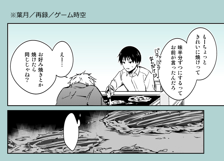 s_🍵☆quiet followPAST※葉月/ゲーム時空(3DSの方)/捏造多8年前くらいに出した葉月本です。加筆修正してます。野性がチラッッッとだけ出てくるので猫の日つながりで再掲しました ##葉月 ##再録 show all(+15 images) Tap to full screen (size:778x560).Repost is prohibited Let's send reactions! freqpopularsnackothersPayment processing Replies from the creator Follow creator you care about!☆quiet follow s_🍵DOODLE大人葉月/同居設定郵便物で月くんが葉くん所属チームのFCに入ってるのが発覚した話。色々想像で描いた葉くんのサインとにかく速くすぐ書けるに特化かと思って微かな知識で書いたけどウォールアートを思い返すともっと凝ってる感じかもしれない。プロになっても7番つけててほしい 2 s_🍵MEMO10月スパークDCRのスペース、東7ホールR38aでした!東7買い物で行ったことはあるけど配置されるの初めてで実績解除の気持ち新しいものとして本文7ページくらいの葉月を置けたらいいなで描いてます。葉月!!って感じの話描くの久しぶりだ…葉月ってかわいいな… s_🍵MEMOワコムのタブレットが届いた嬉しさで取り急ぎ絵を描いた。1枚目が特典のクリスタdebut画で、2枚目がワコムキャンバス画スケッチアプリのワコムキャンバスは気軽にスッと描けるところと機能がけっこう限られてるところで個人的にはアナログでスケブを描いてる感覚と近い まさに できれば全消しがほしいにしても1からタブレットで絵を描いたのって初めてで嬉しい…!これから何かといっぱい触ってタブレットも慣れていきたいな 2 s_🍵DOODLE※🐱+🌸/妄想と捏造しかない/カプ無この二人もっと話とかしてほしくて…… 2 s_🍵DOODLE👓(日+月)良すぎるダジャレはあおいさんにいただきました s_🍵DOODLE知らない先輩からの呼び出し/カプ無 recommended works s_🍵DOODLE2枚目は遼愁※原作2巻とアニメ14話の設定を混ぜている話 2 elixiaoxiaojuc1DONE 10844 のばたDOODLEけしからん!かわいい!! ほいほいPAST支部で温かいコメント頂けてるお話なので…パスは18以上?続編は支部に置いてまっす。 5293 lem927DOODLE hima_TRPGDONE静なるテロリスタHO 童子 / 空見遥立ち絵と差分まとめ 2 your_my_charmeDOODLE keiii_153DONE18歳以上ですか? y/n 赤いお兄さんDONEみくちゃっかふぁいあ 2