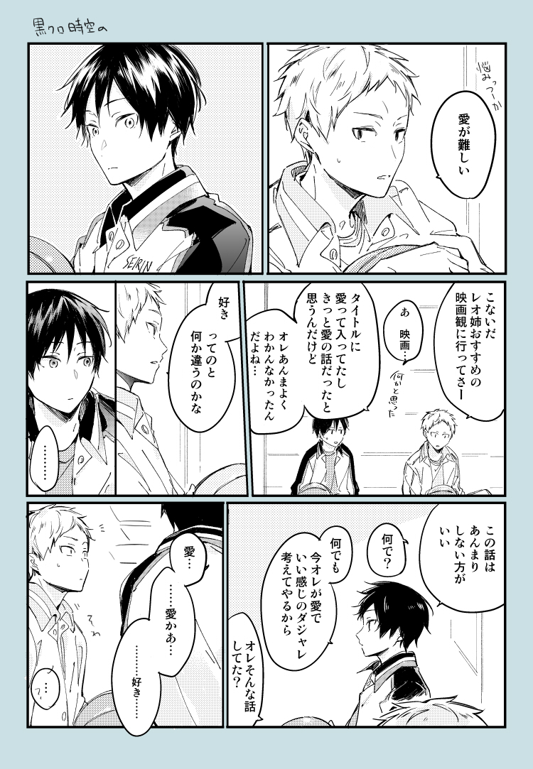s_🍵☆quiet followDOODLE葉月/2年前くらいに描いた漫画の加筆の方再掲くろくろで『愛の衝動』って映画をれお姉と赤くんと葉くんで観に行ったエピソードが好きだった。赤くんは面白かったって言ってた気がするけど葉くんはどうだったんだろう ##葉月 Tap to full screen (size:750x1083).Repost is prohibited Let's send reactions! freqpopularsnackothersPayment processing Replies from the creator Follow creator you care about!☆quiet follow s_🍵DOODLE大人葉月/同居設定郵便物で月くんが葉くん所属チームのFCに入ってるのが発覚した話。色々想像で描いた葉くんのサインとにかく速くすぐ書けるに特化かと思って微かな知識で書いたけどウォールアートを思い返すともっと凝ってる感じかもしれない。プロになっても7番つけててほしい 2 s_🍵MEMO10月スパークDCRのスペース、東7ホールR38aでした!東7買い物で行ったことはあるけど配置されるの初めてで実績解除の気持ち新しいものとして本文7ページくらいの葉月を置けたらいいなで描いてます。葉月!!って感じの話描くの久しぶりだ…葉月ってかわいいな… s_🍵MEMOワコムのタブレットが届いた嬉しさで取り急ぎ絵を描いた。1枚目が特典のクリスタdebut画で、2枚目がワコムキャンバス画スケッチアプリのワコムキャンバスは気軽にスッと描けるところと機能がけっこう限られてるところで個人的にはアナログでスケブを描いてる感覚と近い まさに できれば全消しがほしいにしても1からタブレットで絵を描いたのって初めてで嬉しい…!これから何かといっぱい触ってタブレットも慣れていきたいな 2 s_🍵DOODLE※🐱+🌸/妄想と捏造しかない/カプ無この二人もっと話とかしてほしくて…… 2 s_🍵DOODLE👓(日+月)良すぎるダジャレはあおいさんにいただきました s_🍵DOODLE知らない先輩からの呼び出し/カプ無 recommended works s_🍵DOODLE2枚目は遼愁※原作2巻とアニメ14話の設定を混ぜている話 2 うたきDOODLE▲黒猗窩▲童猗窩わからせられる座 2 HasuH_DOODLE未満 3 はち_たいやきDOODLE 2 taro_sabaDONE侑日webオンリー!君トス3開催おめでとうございます 6 popopochidayoDOODLEあったかいね norimayopon3DOODLE幼子と毒の魔女自陣ラクガキ自陣あのシーン完全にコレだった一応ふせ snn__3PROGRESSウィーウィッシュア! z_n_jinSPOILER庭師現行未通過❌自陣こと浅吾班イメソンパロ最後はおまけpass:y 6