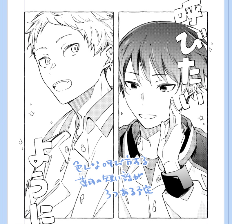 s_🍵☆quiet followPROGRESS表紙とりあえずこんな感じで…!クラフト紙スミ表紙(1月インテ発行3年連続)予定本文まだ終わってないから来年それが終わったら表紙の修正とか調整とか色々…余裕があれば…無事に来年も葉月の本を出したい!! Tap to full screen (size:800x772).Repost is prohibited Let's send reactions! freqpopularsnackothersPayment processing Replies from the creator Follow creator you care about!☆quiet follow s_🍵PROGRESS表紙とりあえずこんな感じで…!クラフト紙スミ表紙(1月インテ発行3年連続)予定本文まだ終わってないから来年それが終わったら表紙の修正とか調整とか色々…余裕があれば…無事に来年も葉月の本を出したい!! s_🍵MEMO2025年振り返り🐍今年は全体的にキ ルアオに感情を揺さぶられ続けた年だった…!2月あたりからずっと掲載順にドキドキして9月に連載が終了して同時にアニメ化が発表されて……悲喜が……。12月の小説版ではずっと求め続けてた猫田くんのパーソナルを垣間見ることができて本当に嬉しかった!!続刊絶対ください!!2026年にアニメが放映されることソワソワしつつまだあんまりピンときてないくろばすは2025年の願いのひとつでもあった巡回展に無事行けて本当に良かった……!!原画展その後音沙汰ないけど通販かもしくは追加開催あったりしないかなをこっそり期待していますあとは🐧タクティカルがすごい好きだったのと、黒スーツ今年は推し二人いなかったけど黒スーツというコンテンツを続けてくれていることが本当に嬉しいし、SRさんは今年も葉山くんの新衣装をありがとう…伊月くんの新衣装も待ち続けたい年々どんどん時間と体力が足りないを痛感するようになってきて、その分もっと気軽に絵も漫画もたくさん描きたいを目標にしています。9月に買ったワコムのタブレットももっと使いこなしていきたい!原稿もするぞ!! 4 s_🍵DOODLEキ ルアオ小説版を読んでの猫田くん感想絵 s_🍵SPOILER(2025.12.6更新/単行本13巻と小説版まで)キ ルアオ本誌と単行本のネタバレ個人的雑感 84814 s_🍵PAST日月/2024年10月発行の日月アンソロに寄稿させていただいた漫画の再録です。一部加筆修正してます。進学理由がメインテーマの素敵なアンソロです、お誘いありがとうございました!! 5 s_🍵DONE🎉誕生日おめでとう!!!
