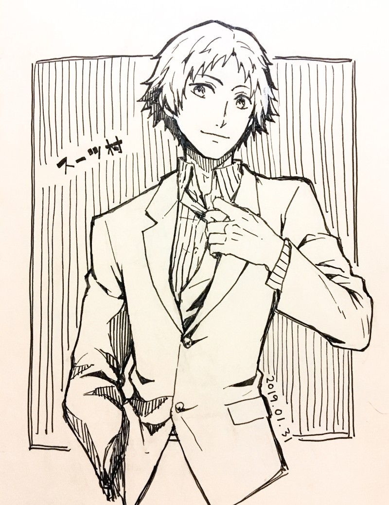 スーツ滅多に描かないからむっずい
